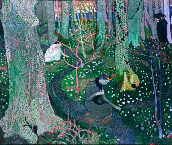 М. Дени, «Апрель» (1891)/О. Редон, «Циклоп»: своими яркими цветами и схематичностью фигур герои становятся продолжением пейзажа.
