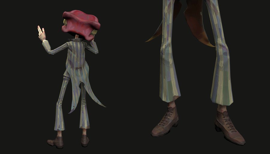 По костюму Оратор сложно определить его сословие — яркие и тусклые цвета, качество ткани и крой противоречат друг другу, — а фалды фрака придают герою уникальный силуэт.
