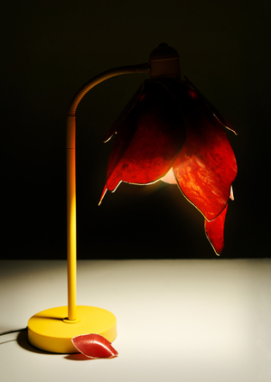 Petallume — это настольная лампа с уникальным абажуром, выполненным из переплавленного пластика в форме цветочных лепестков, окаймленных изящной золотистой лентой. Абажур объединяет экологичность переработанного материала с утончённой эстетикой, создавая мягкий, тёплый свет и атмосферу уюта