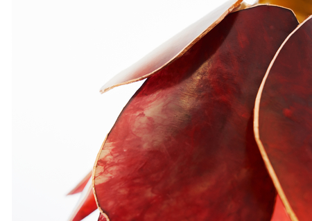 · Переработанный и сформированный пластик красного цвета с вкраплениями прозрачного, для создания эффекта узора на лепестках, а также красивого преломления света