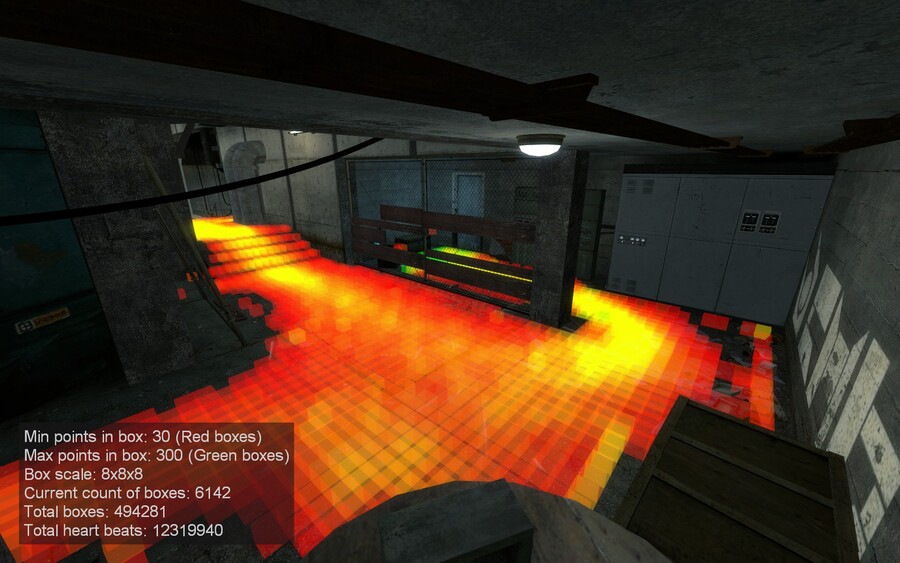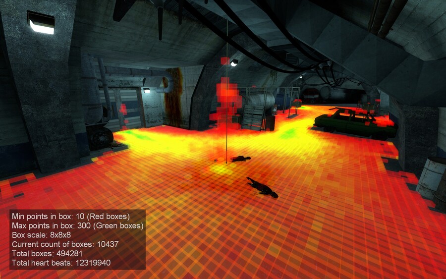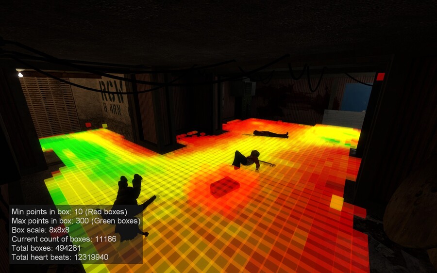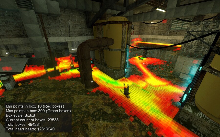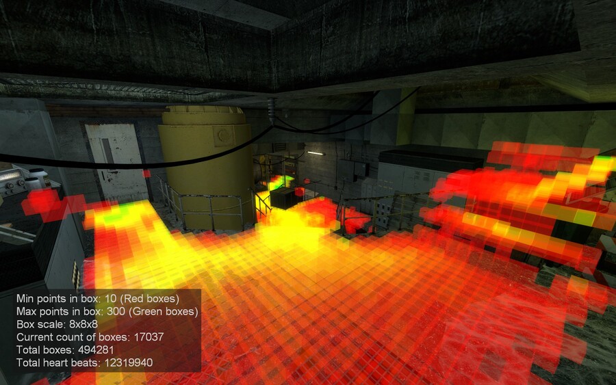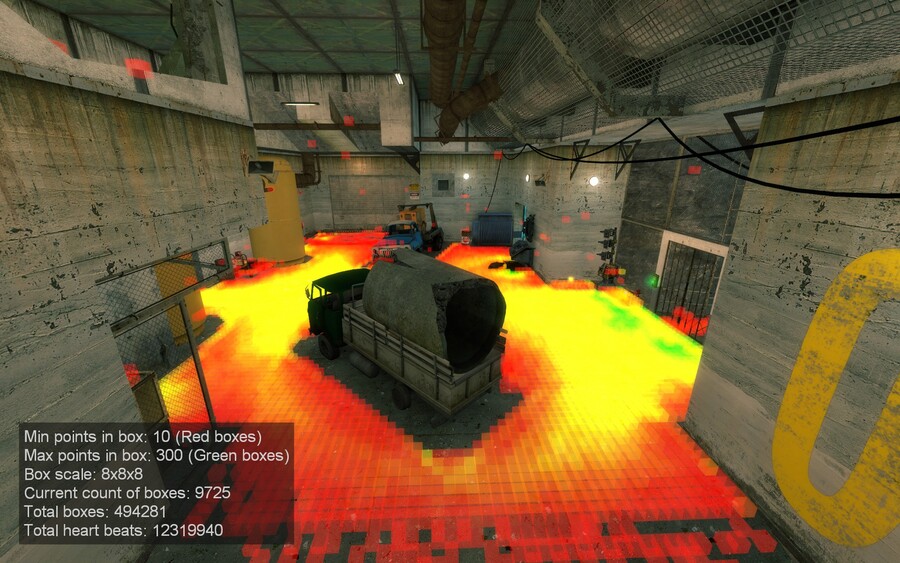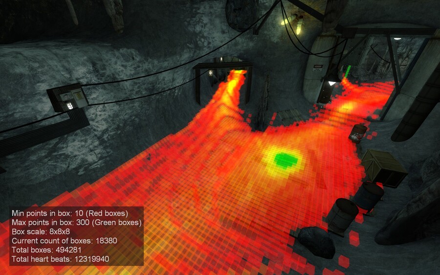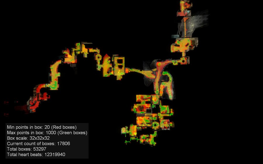 Ниже представлена «плотность» игроков. Зелёный — игроки часто бывают в этой точке Красный — игроки редко бывают в этой точке