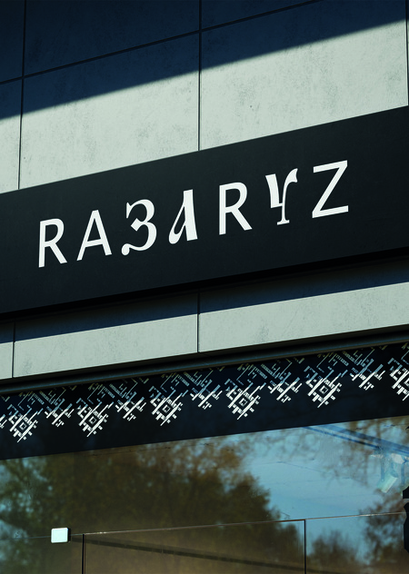 Название бренда — отсылка к старому названию, образованному от фамилии основательницы. В нём сочетаются латиница и криллица, как символ трансформации и интеграции русского кода в бренд. Чтобы подчеркнуть эти два аспекта в латинице и кириллице были использованы разные шрифты.