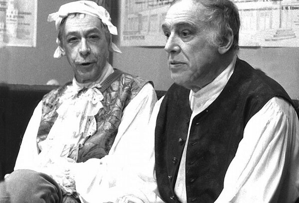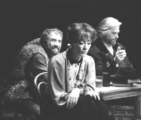 «Соло для часов с боем», 1973 г. Сцена из спектакля. Райнер –А.Н. Грибов, Франтишек Абель — М. М. Яншин, Хмелик — М. И. Прудкин, Пани Конти — О. Н. Андровская