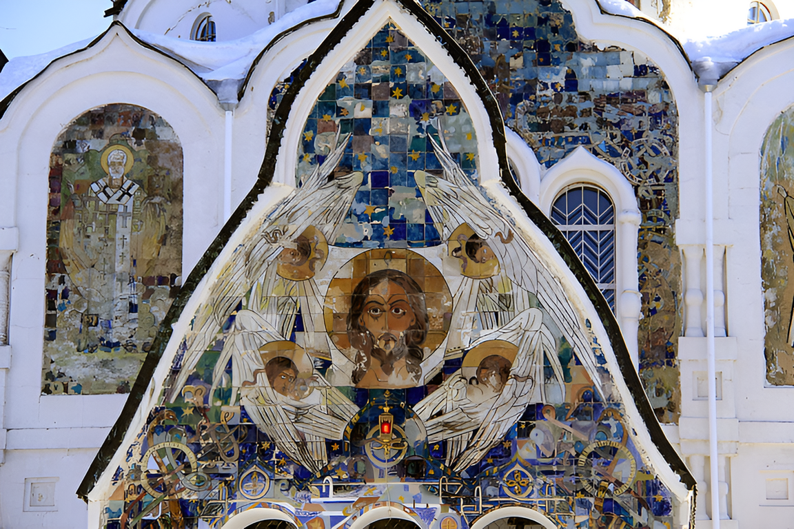 Иконостас в Храме Спаса-Нерукотворного. По эскизу В. Д. Поленова (1881-1882); мозаика Храма Спаса-Нерукотворного. По эскизу В. М. Васнецова (1881-1882)