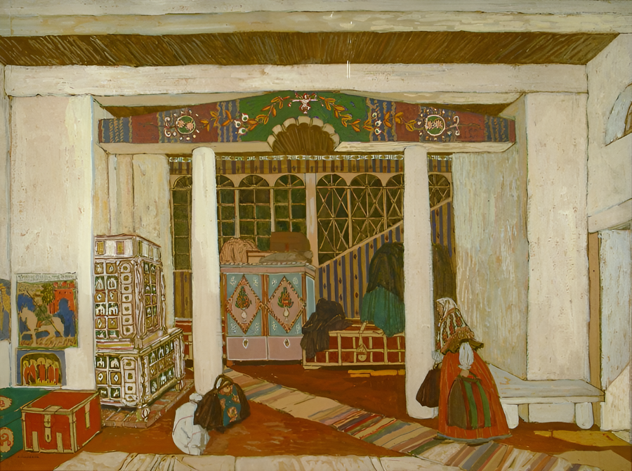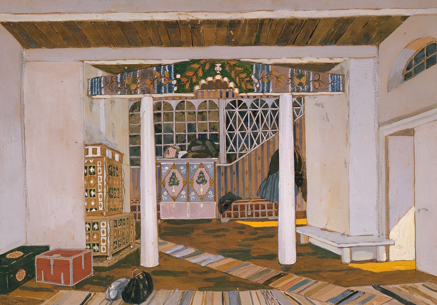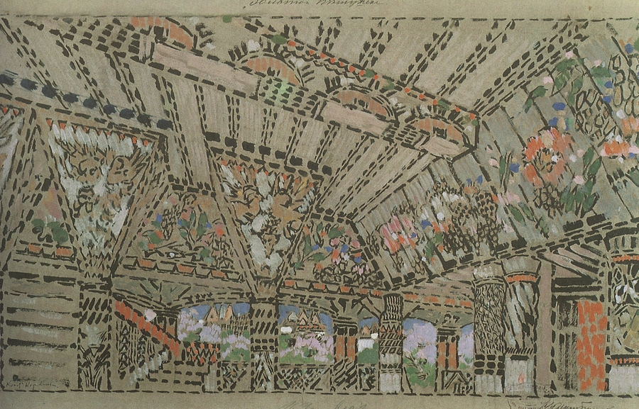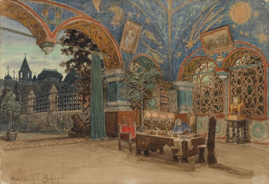 Эскиз декорации к постановке оперы Н. А. Римского-Корсакова «Псковитянка». Терем князя Ю. И. Токмакова. А. Я. Головин (1901)