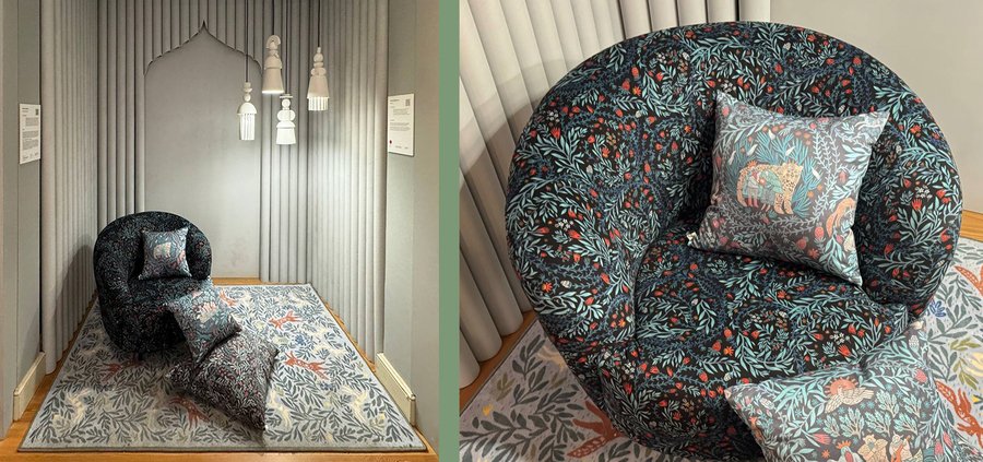 Кресла Mini Brahma в гобеленах «Шмели и бабочки». Ирина Батькова и Наталья Сибилева. Экспозиция «Трын* Трава» (2024)