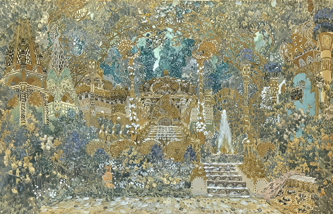 Сцена из балета «Жар-Птица». Декорации по эскизу А. Я. Головина (2020)