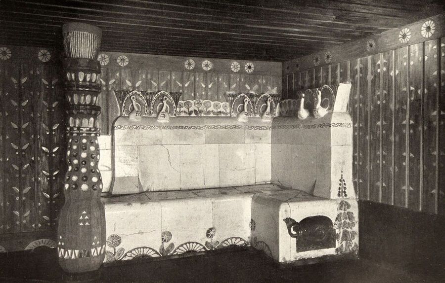 Теремок. Печь; общий вид. Опубликован в журнале «Мир искусства». По проекту А. Я. Головина (1903)