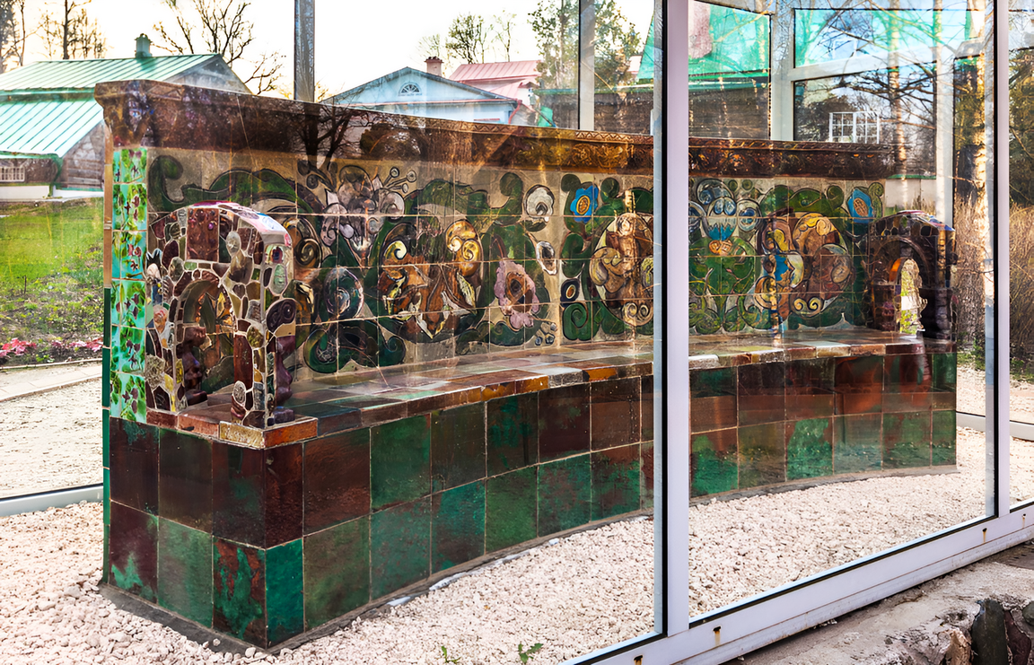 «В гончарной мастерской ярко раскрылся талант М. А. Врубеля как скульптора и керамиста. Выполненные им майоликовые вазы, декоративные панно, изразцы для каминов и статуэтки, открыли новую страницу в истории русского декоративно-прикладного искусства» [3].