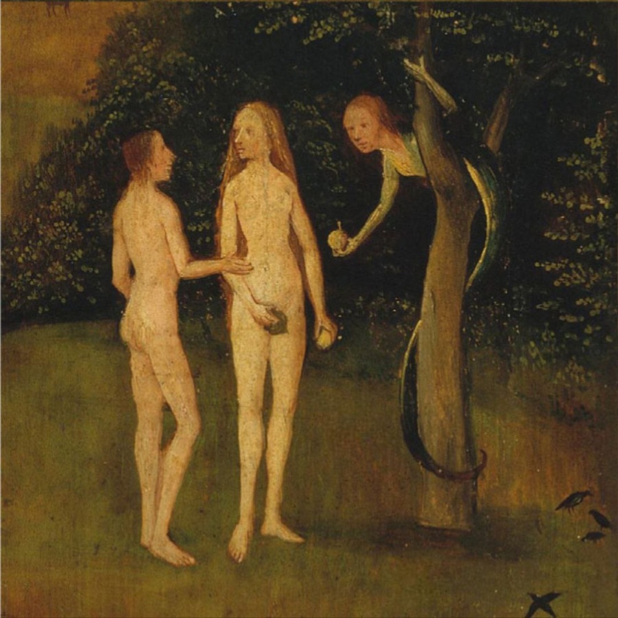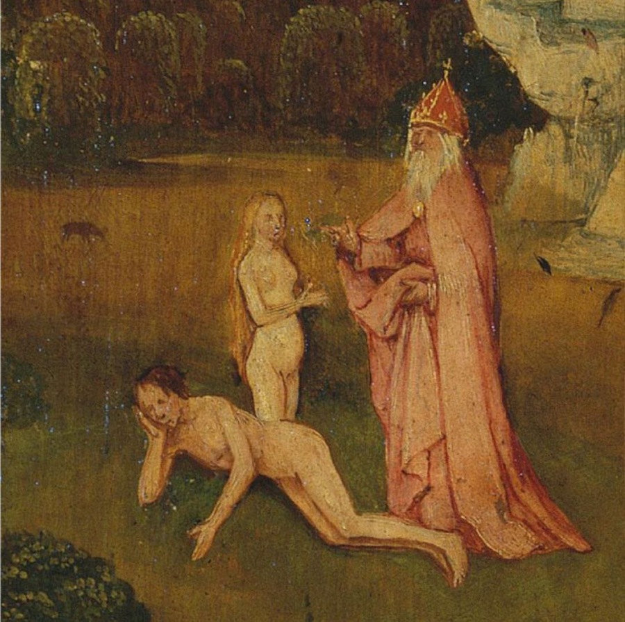 Первая часть триптиха–сотворение мира. В данной части проиллюстированны сотворение человека, грехопадение и изгнание из рая. Это религиозное начало всего.