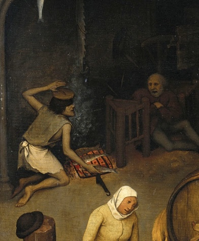 В сцене обжорства предстает семья за пиром, жадное и бесконтрольное поглощение пищи, ненасытность. Ситуация грязная и мерзкая, эти люди не видят ничего в жизни, кроме набития желудка.