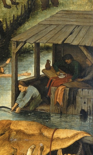 Рисунок «Большая рыба поедает маленьких рыбешек» говорит о связи Питера Брейгель и Иеронима Босха. Брейгель был поклонником творчества Босха, и однажды наставник попросил его создать работу в стилистике Босха, и получилось данное полотно Однако когда с этого рисунка были отпечатаны гравюры, в левом углу стояла подпись Иеронима Босха — хоть тот умер за полвека до создания рисунка. Автор подделки — не Брейгель, а его издатель, Иероним Кок. Работы Босха тогда были «в тренде» и продавались гораздо лучше творений никому не известного молодого Брейгеля. По этой причине Брейгеля обвиняют в подделке работ Босха.