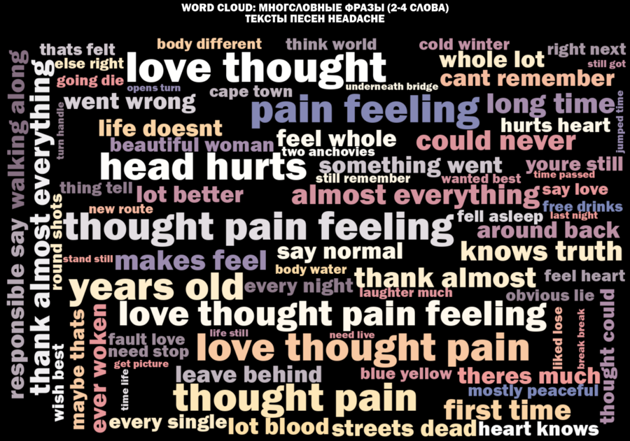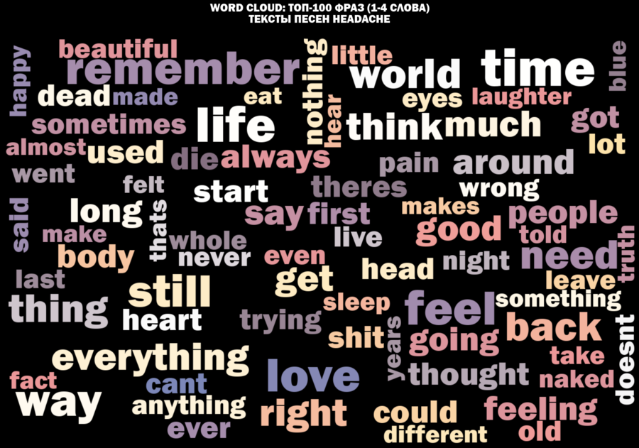 Этот анализ показывает, что наличие слов с позитивной окраской в текстах песен не всегда свидетельствует о том, что песня позитивна. Для понимания настроения песни требуется более глубокий анализ, и результаты могут удивлять. Для полноценного понимания лирики важен глубокий анализ. И, возможно, для ещё более точных выводов о текстах требуется не только доступный с помощью программирования метод анализа, но и глубокое понимание среды, окружающей музыканта, событий его жизни и как они могут соотноситься с текстом: используются ли там метафоры или весь текст написан буквально. Но именно этим музыка Headache и прекрасна: она сложна и заставляет задуматься.