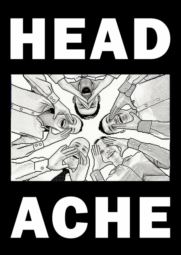 варианты обложки для проекта с обработкой изображений с реальных обложек альбомов Headache с Nanobanana в стиле простого чёрно-белого ascii art