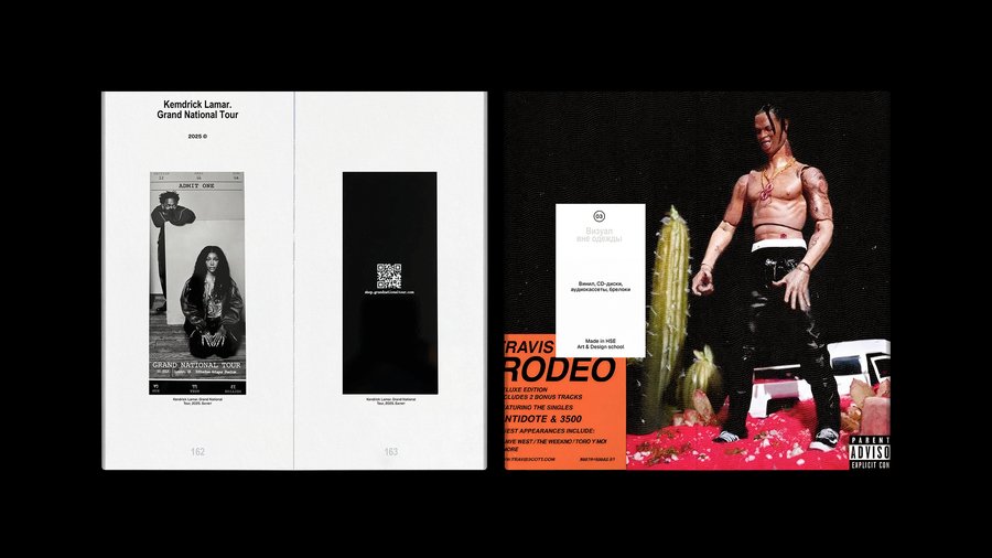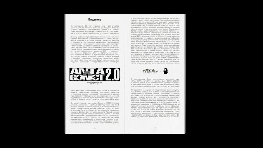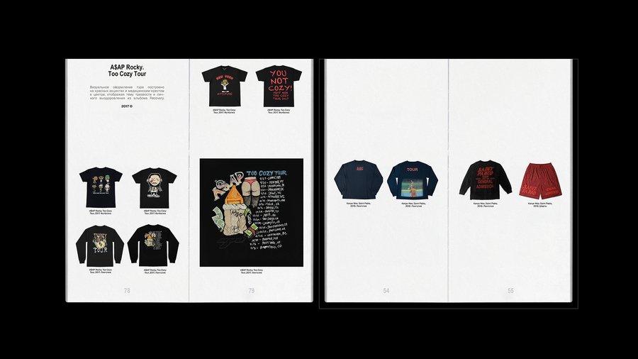 Визуальное исследование посвящено анализу трансформаций стиля и визуала туровых коллекций рэп-артистов, прослеживанию смены эстетик и влияния культурных трендов на мерч разных периодов.