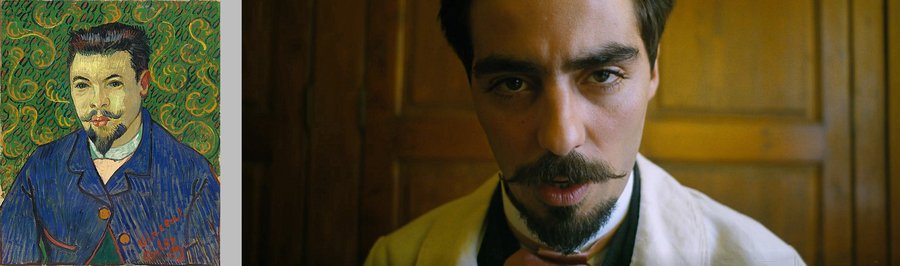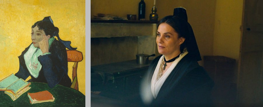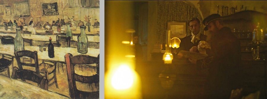 Не только то и дело появляющиеся в кадре картины Ван Гога — создающиеся стремительными мазками, висящие на стенах, обсуждаемые другими героями — придают фильму соответствующий колорит и настроение. Чуть более внимательный зритель узнает те или иные полотна Винсента в отдельных сценах и кадрах, отсылающих к многочисленным портретам и автопортретам Винсента (снятые крупным планом лица), излюбленным пейзажам и не только.