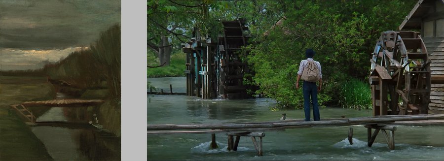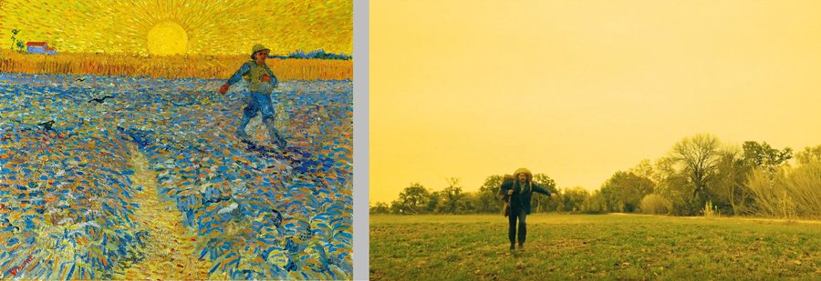 В фильме герой идёт через залитые солнечным светом пейзажи с картин Винсента.