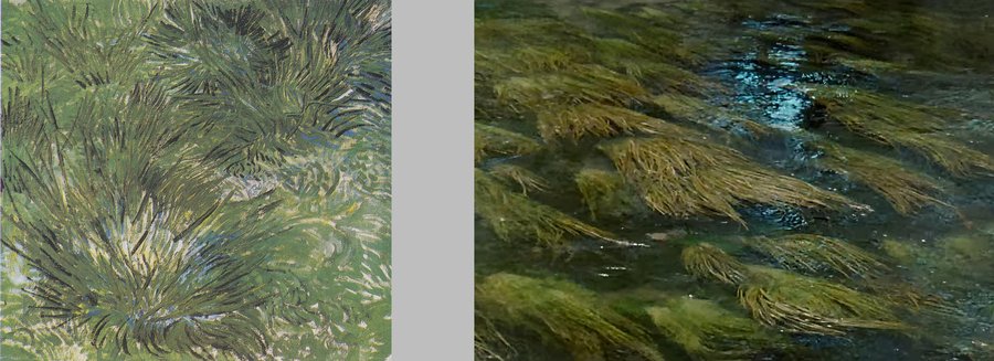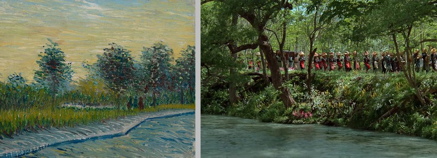 1. «Аллея в парке Вуайе д’Аржансон в Аньере», 1887. 2. «Пейзаж с голыми ивами», 1884. 3. «Пешеходный мосток через канаву», 1883. 4. «Пучки травы», 1889 // «Сны Акиры Куросавы», реж. А. Куросава, 1990