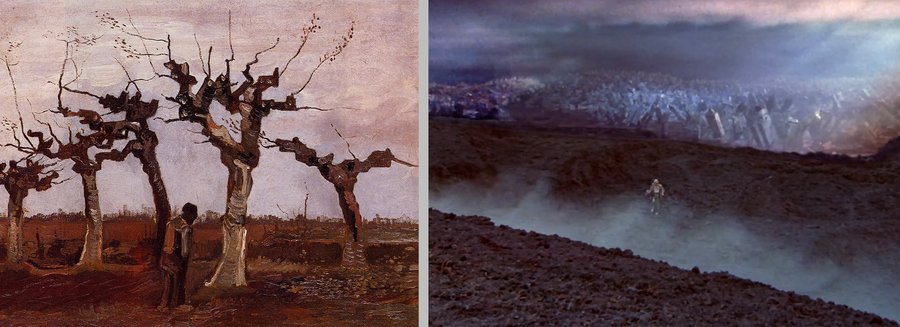 Винсент Ван Гог. 1. «Холм Монмартра и карьер», 1886. 2. «Художник идет работать», 1888 // «Сны Акиры Куросавы», реж. А. Куросава, 1990