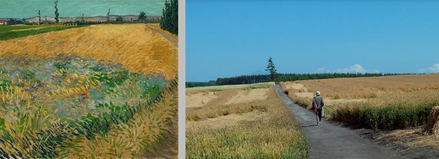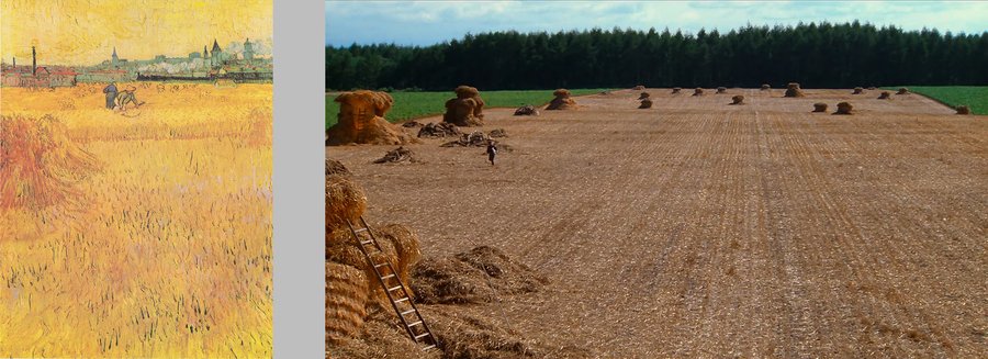 Винсент Ван Гог. 1. «Урожай в Провансе», 1888. 2. «Пшеничное поле со снопами», 1888 // «Сны Акиры Куросавы», реж. А. Куросава, 1990