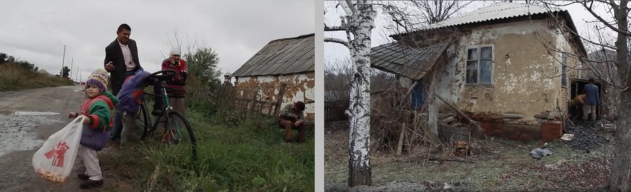 Документальное кино отличительно тем, что каждый кадр в нём выстраивает сама жизнь — нет ни искусственного света, ни декораций и спецэффектов. В реалистичных сценах мы ощущаем постоянный мрак, полутьму, в которой обитают герои в своем полуразвалившемся доме, и даже снаружи пасмурно и дождливо. Все цвета природные, грязные, землистые.