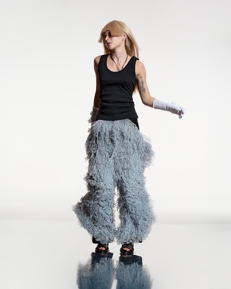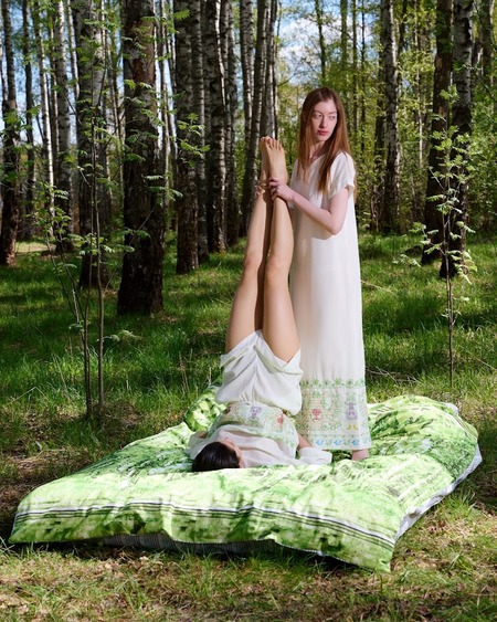 Drawing inspiration from their own childhood memories of Russian rural life, and the freedom of pre-18th century pagan festivals, their knitted and embroidered collections are exclusive to those unafraid to merge their childlike spirit with their sensuality.